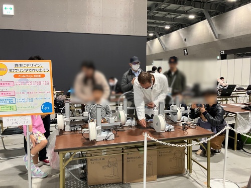 ロボラボエリアのワークショップにて3Dプリンタの体験イベントでたくさんの参加者が来場されました。