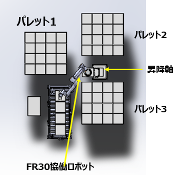 格安協働ロボットFAIRINO(ファイリノ/フェアリノ)を利用刺したパレタイズ装置です。
