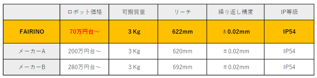 中国「Fair Innovation (suzhou) Robot System Co., Ltd」の協働ロボットです。もともとモータと減速機のメーカーのためロボットの心臓部である減速機やサーボモータが内製化されているため価格を大幅に抑えて安定した性能のロボットを提供可能となっています。